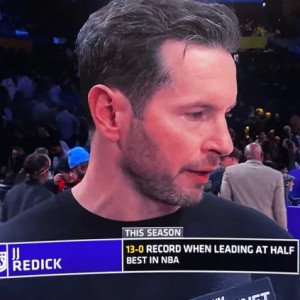 虎扑01月14日讯 今日NBA常规赛,湖人对阵老鹰的比赛正在进行中。半场结束时湖人81-60领先老鹰,湖人主帅JJ-雷迪...